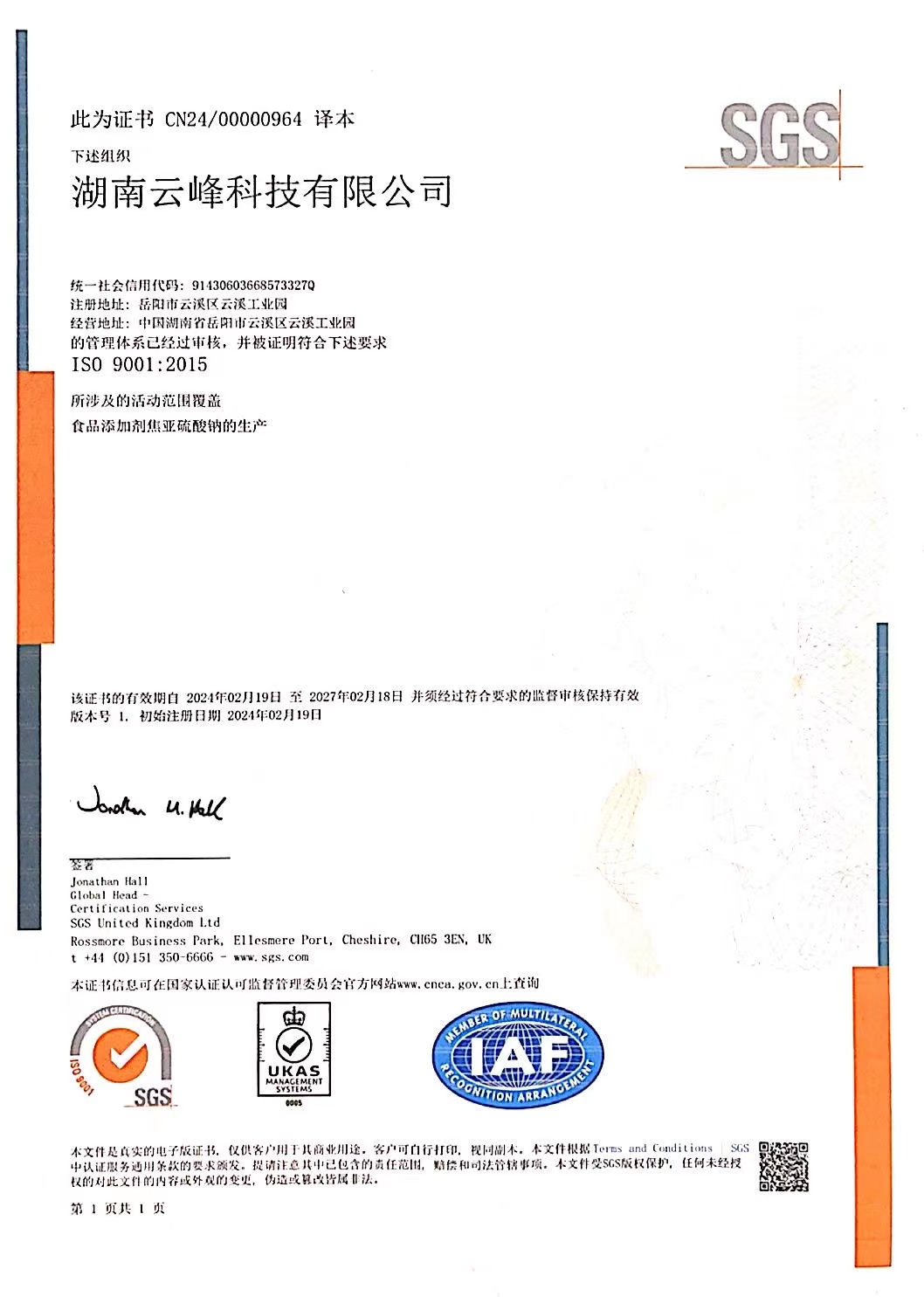 湖南云峰科技有限公司(以下簡稱云峰科技),是由長沙湘岳化工責任有限公司全額投資以生產焦亞硫酸鈉、亞硫酸鈉等亞硫酸鹽為主營業務的高科技企業,具有六十多年的生產歷史,同時也是焦亞硫酸鈉的國家標準制定參與者。在行業內具有很大的影響力。現有職工八十余人。具有優良的經營管理團隊和成熟的生產技術隊伍。由多位在化學、化工行業擁有豐富工作經驗的工程師及技術員團隊組建而成,致力于亞硫酸鹽產品的研發、生產和銷售。2020年公司對生產設備、安環設施及工業技術等進行了大規模的升級改造,使焦亞硫酸鈉和亞硫酸鈉的生產工藝更加先進,技術更成熟,產品質量更優良。無論在生產工藝、設備、產品質量、清潔生產、節能環保和員工素質方面,均處于行業領先地位。公司的主導產品“云峰”牌焦亞硫酸鈉,歷史悠久,深受國內外客戶信賴,產品遠銷東南亞、歐美、非洲、南美洲等20多個國家和地區,產品供不應求。